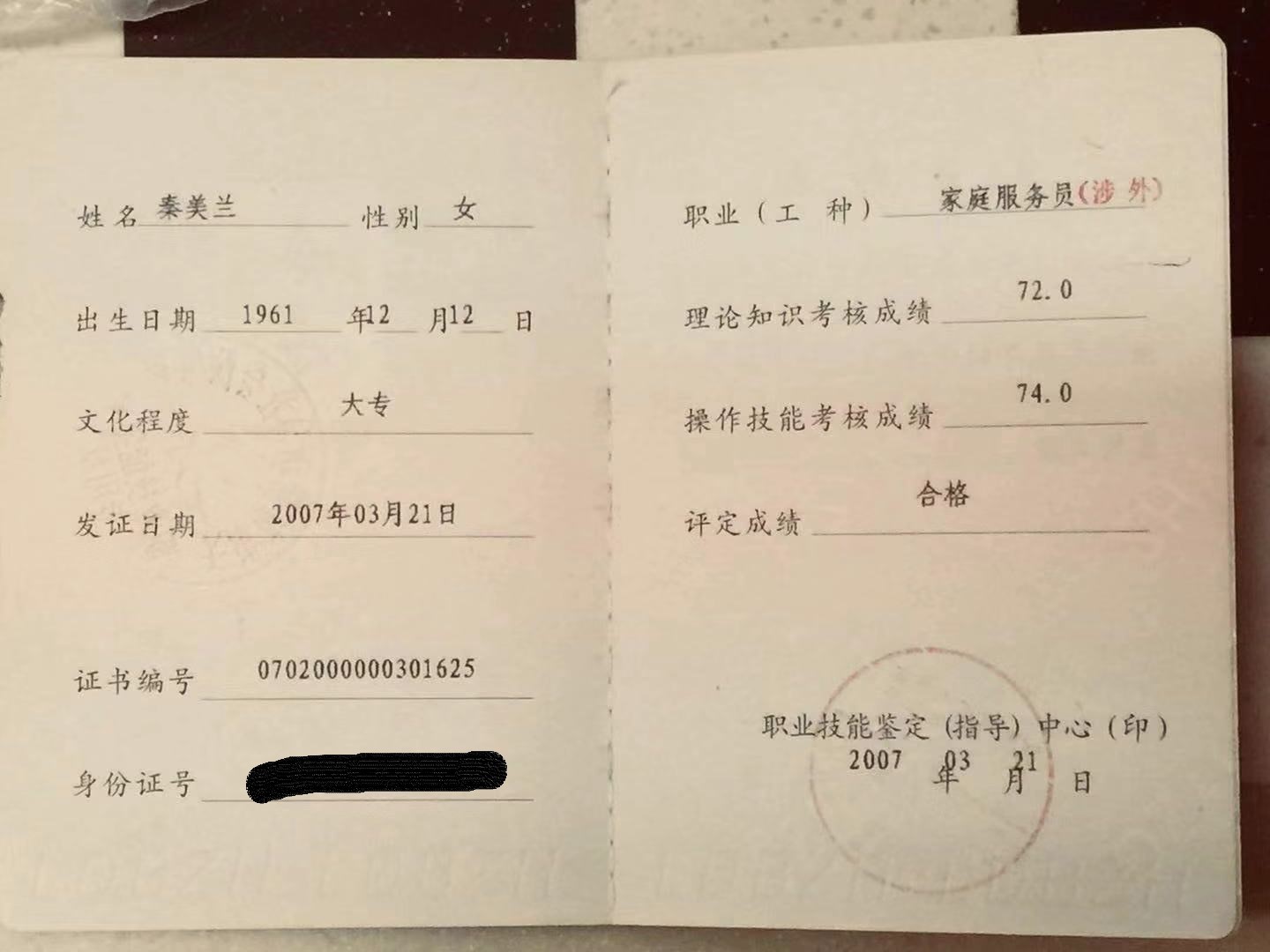 | 婚否: | 已婚 | 民族: | 汉族 | 证书: | 月嫂证书 | |