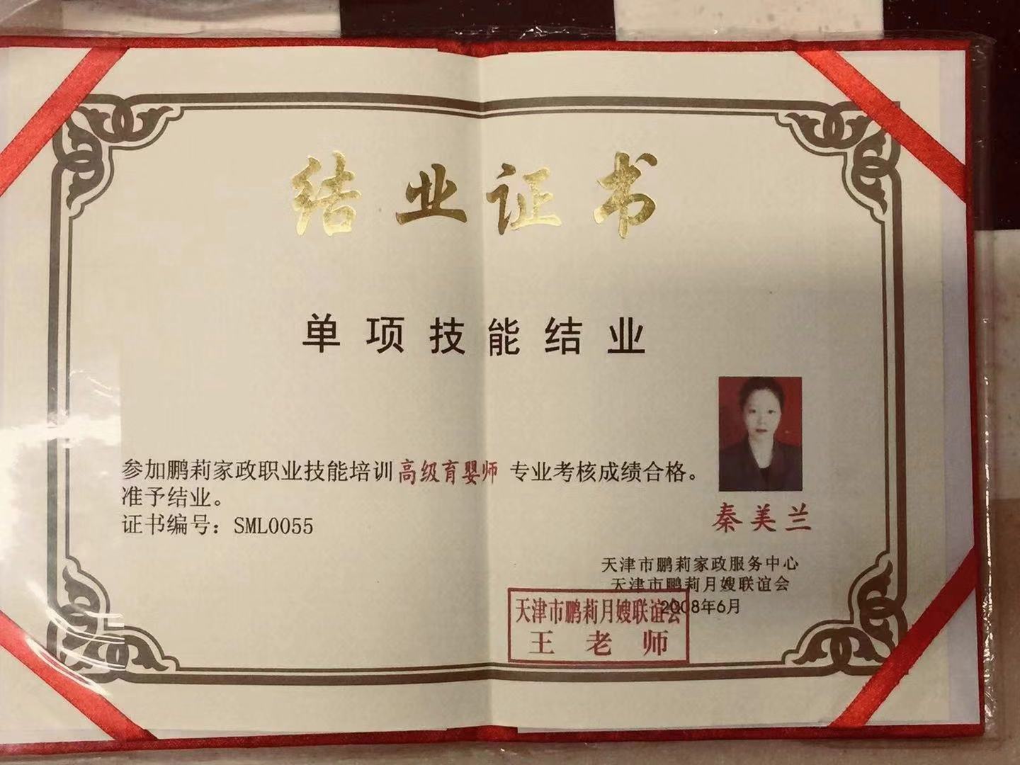 2009年考取月嫂证书