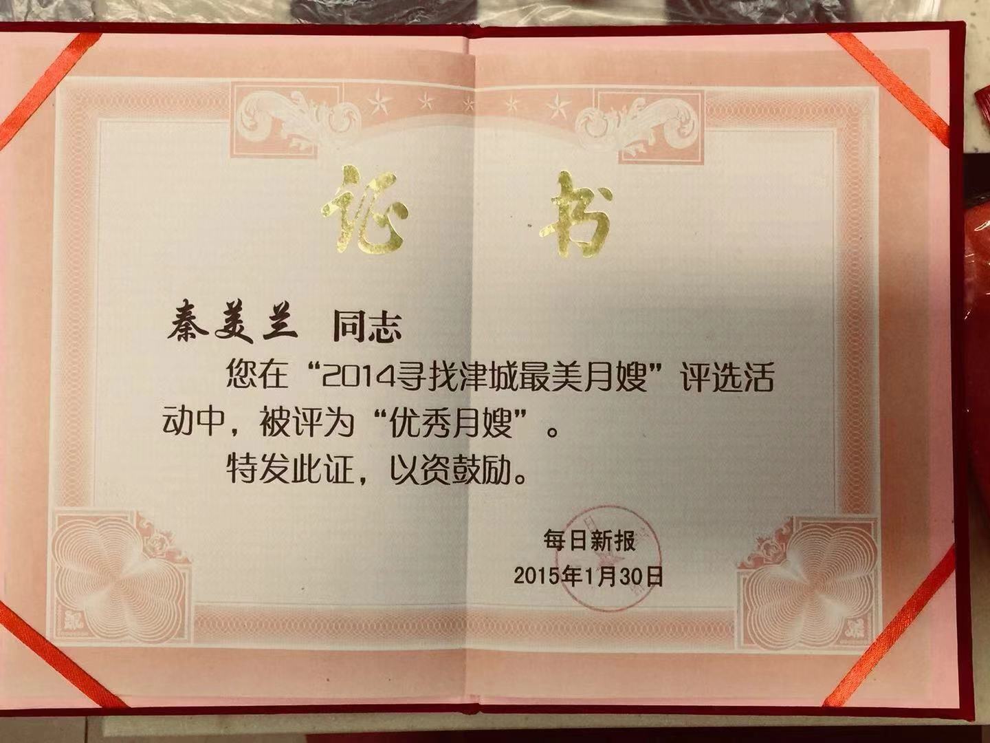 我是天津的宝妈,16年12月底生的孩子,由于我不是母乳喂养所以比较麻烦,秦姨是我找的第二个阿姨,她非常敬业和专业,动作麻利,一切以孩子为中心专业精神让我非常放心,而且她超级爱宝宝拿每个宝宝都当作自己家的孩子,对待我也是没有一丝保留,现在宝宝的很多细节比别家宝宝都好,其实细想想都是秦姨在新生儿阶段立下的功劳,我十分感激她,永远也忘不了在我初为人母的那个艰难阶段她对我的无私帮助!<br />                                              天津聪聪妈<br />                                                      韩静