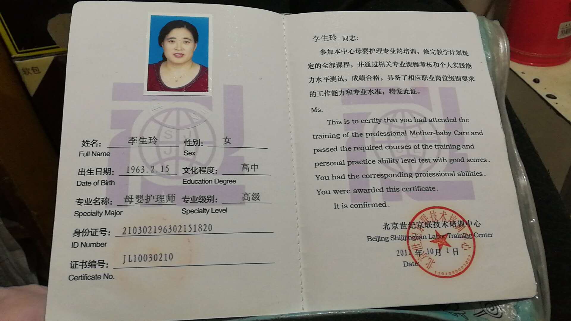 李生玲 1963年2月15日 已婚 辽宁省鞍山市铁东区 10年工龄‘’ 我是辽宁鞍山人。大专毕业。1983年到1986年在辽宁鞍山台安做过小学教师,1986年到辽宁鞍山市印染厂做检验员。后因单位倒闭买断下岗了,2006年来到北京做母婴护理工作,一干就是十一年,在这十一年的月嫂生崖中,我服务过70多个客户,受到了很多客户的好评,我的工作虽然辛苦,但是我喜欢我的工作,喜欢宝宝,我是一个热爱生活,有爱心,爱干净,懂早教,擅长诗歌,经常给小宝宝绘声绘色讲故事的,也是非常有责任感的,对产妇的乳房护理,通乳有独到的手法,我更擅长做月子餐,能做一手好吃月子餐,擅长做东北菜,川菜。每一家都夸我饭菜做的好吃。我现在做的客户一般都是我做的老客户生二胎又来找我。我的特点就是干净利落,做饭好吃,能干活。性格开朗,会沟通。做过的客户都很喜欢我。