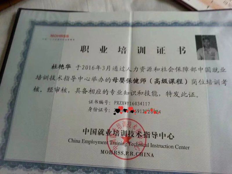 高级母婴护理师证,