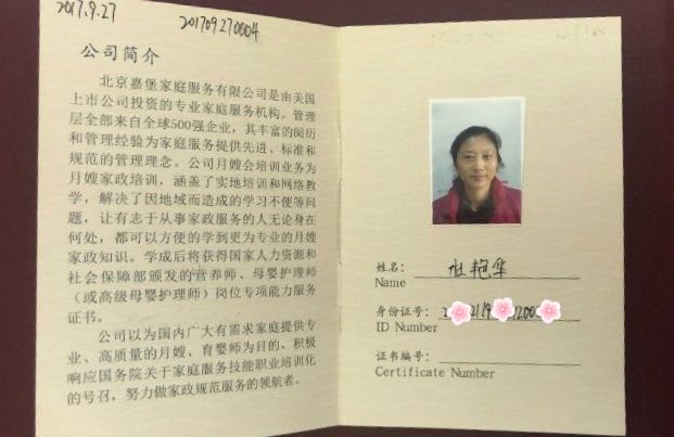 资历;月嫂九年多,德国和瑞士等地也有一年半工作经验,熟悉当地人文环境,月嫂工作期间大约带过六十个左右,