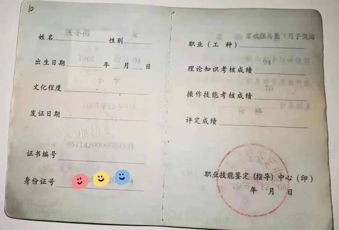 | 婚否: | 已婚 | 民族: | 汉族 | 证书: | 家政服务员 | |
